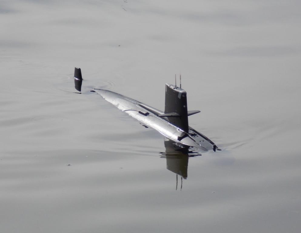 Shark had first proper pond test today it was a mixed bag....on one hand no water in SD and ran well on surface, on the other hand couldn't achieve PD (pond must be denser water than the bath and I forgot to bring spare ballast!) was bow up when tank fully blown, but the worst thing was when I got home and was cleaning boat noticed bottom rudder is GONE!! must of detached during second run just before I packed up (grub screw was as tight as possible without stripping too.....grrrrr) going back to pond later (hopefully wind will shift around so the layer of scum obscuring surface will move to other side of pond!!