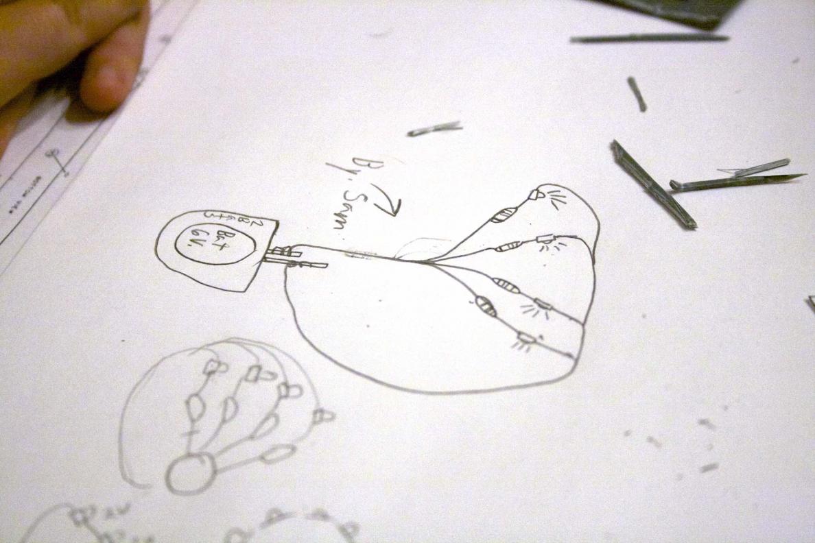 After explaining, Sam said "let me repeat what I heard to make sure I understand" (and proceeded to draw as he explained what he correctly understood). Looking back, I should have taught him the correct symbols for resistors, LEDs, and power sources. Well, it worked as it is so next time we will be a little more accurate (maybe throw in some Ohm's law too!).