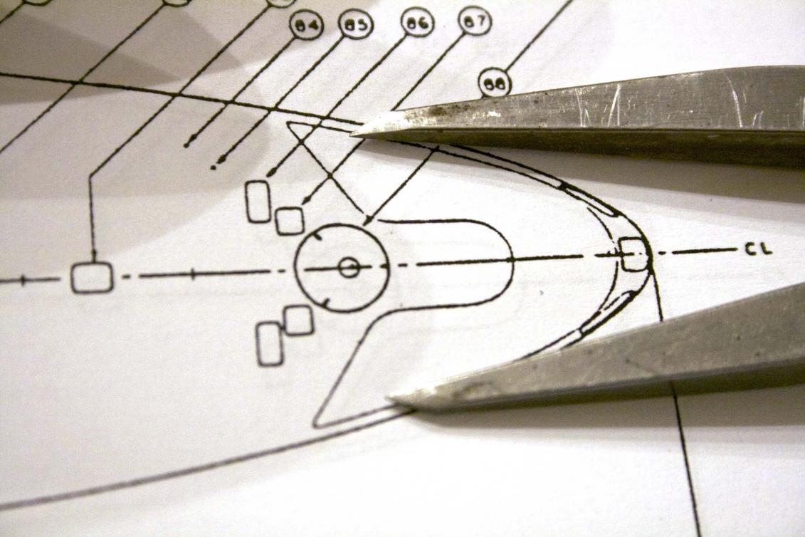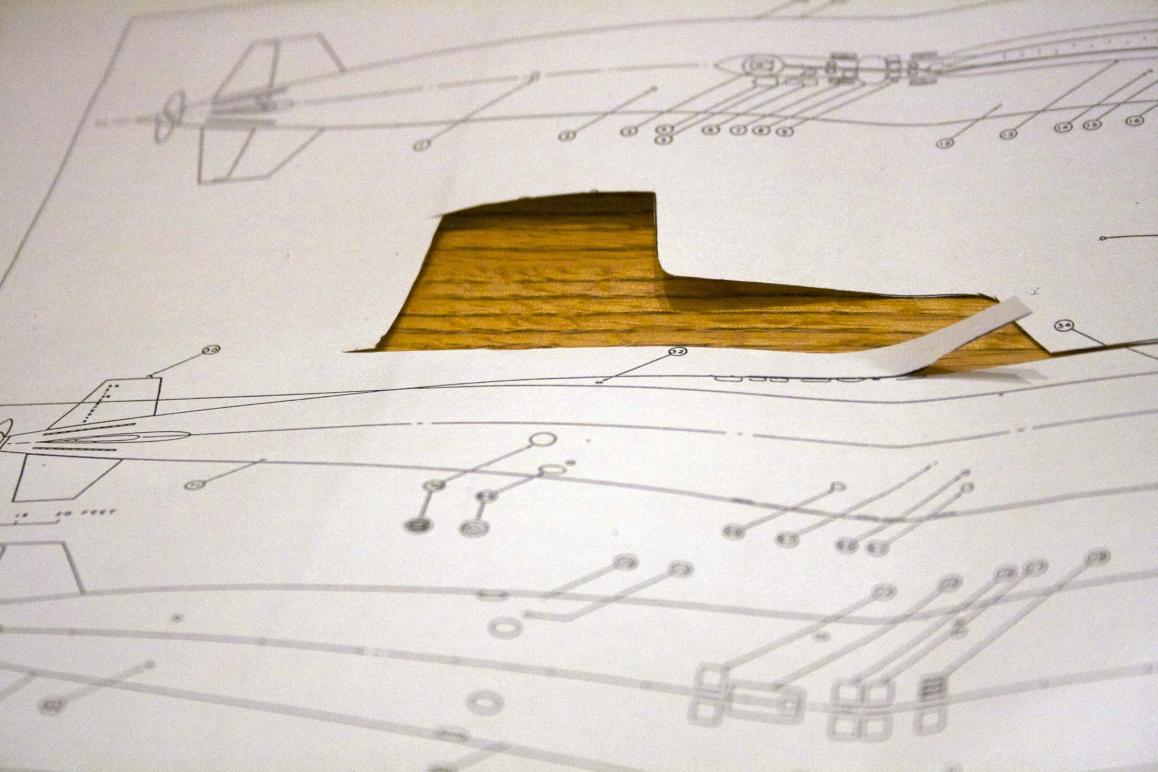 Sam noticed that the model's exhaust fairing is longer than the plan shows. We marked the fairing up just on the chance Sam (and I told him he would need to do it) wants to make it accurate.