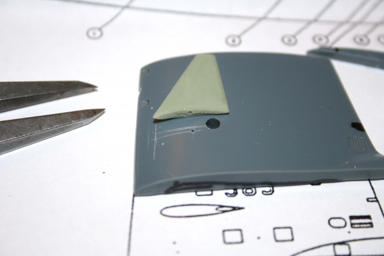 I cut out the bearing or mounting for the original location of the plane. You do not need to, I suppose, but I did anyways. This hole will be filled with baking soda and CA or with the Evergreen Metal Glaze.