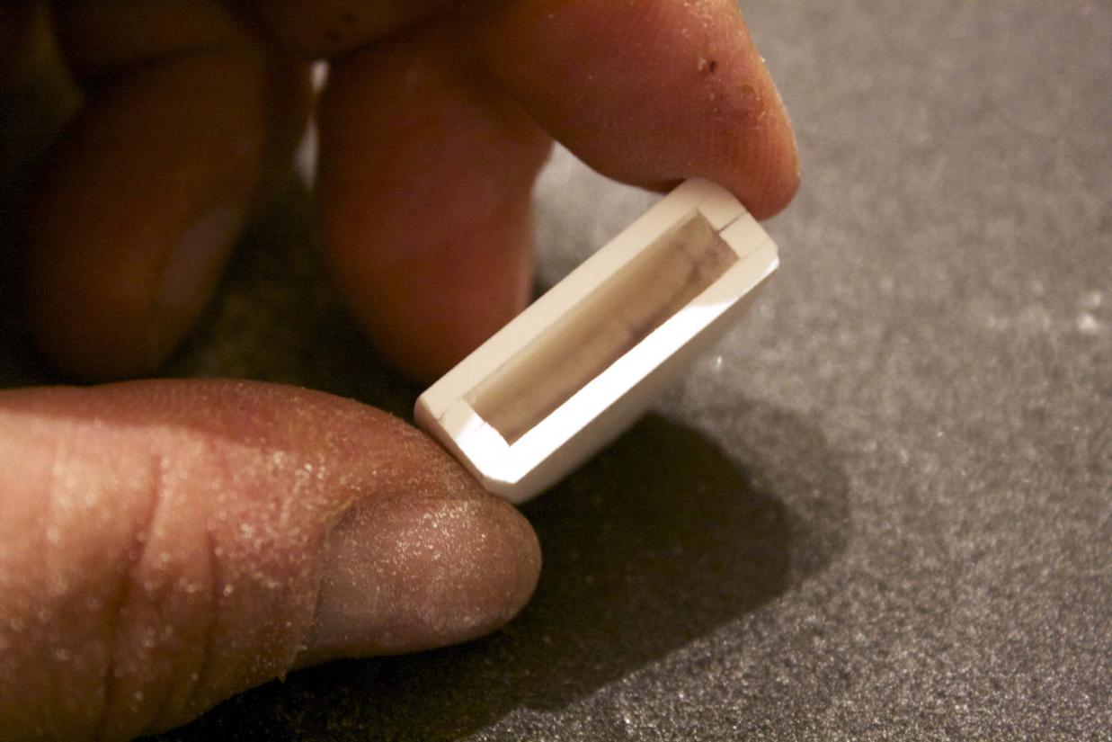 It too was cut out. The unit was sanded and edges rounded for fit in the bow.