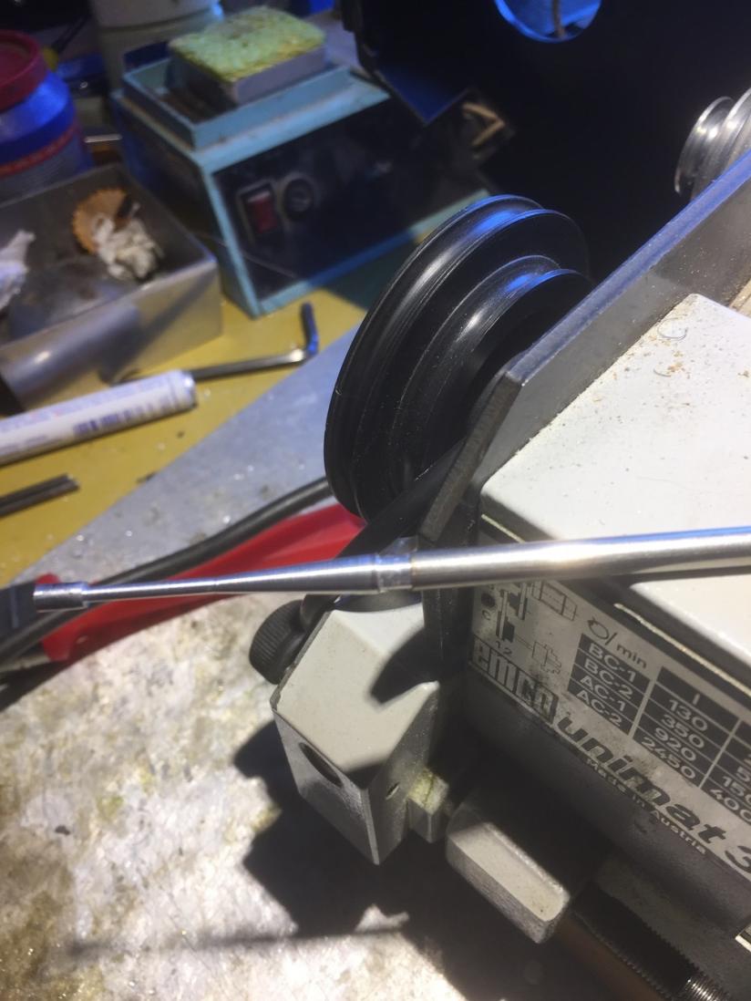 Lower part has the right dimension for inside the stainless tube, working on the smallest part which contains the peroscopehead.