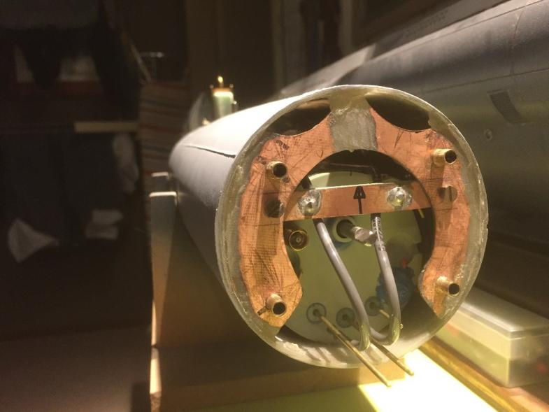 Bended the rods for controlling the launchtubes, it's a tight fitt around the control switches but enough room is left for moving them.