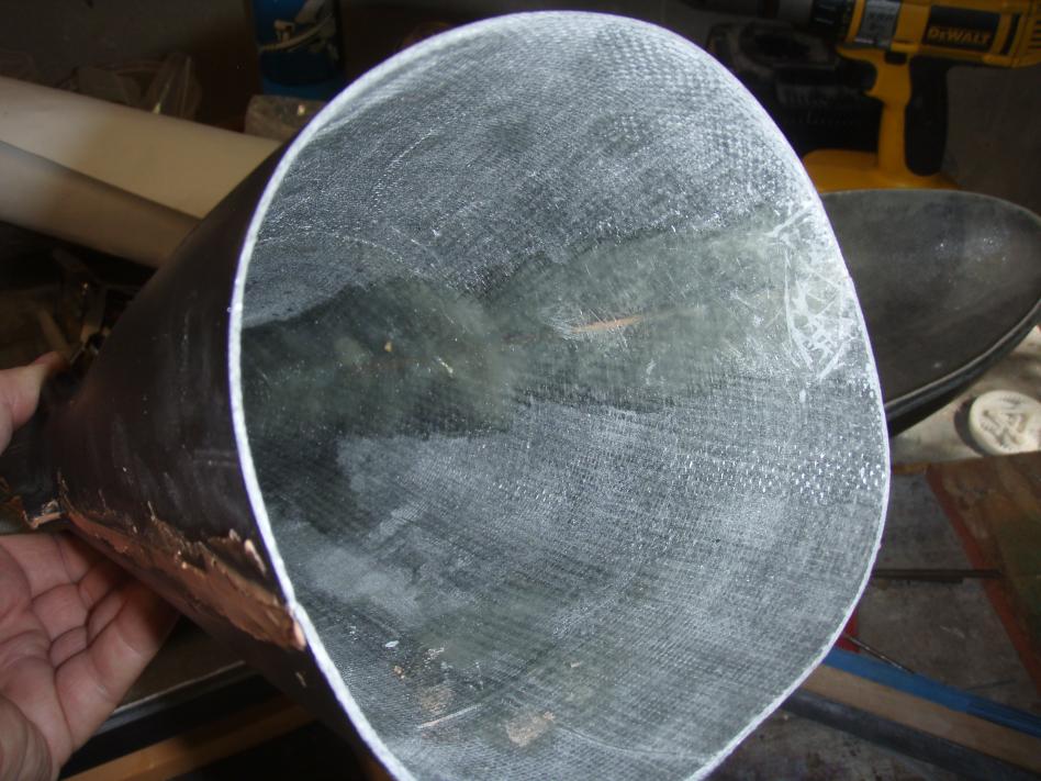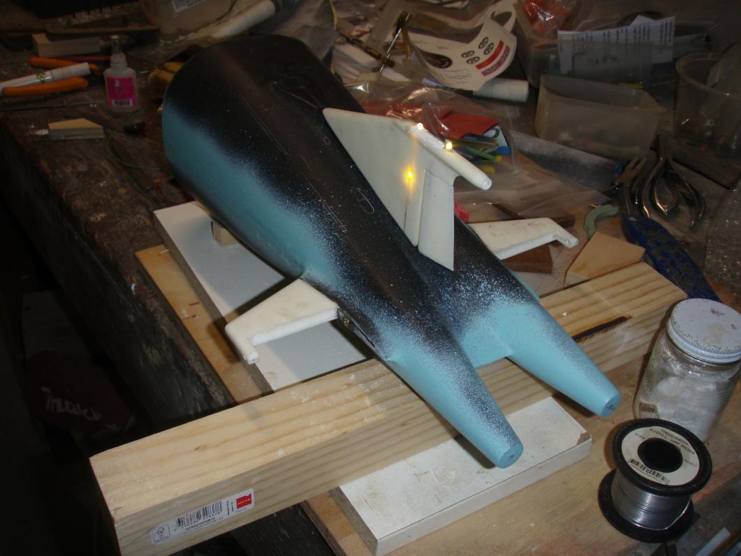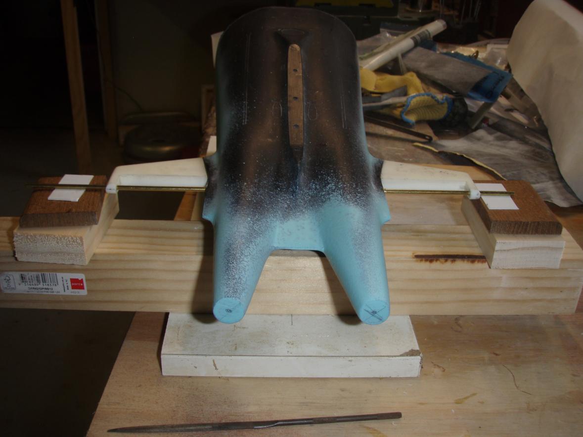 So far I've sanded down the flanges and dry fitted the hull upper and lower forward halves as well as glassing the tail cone together. Thus:
