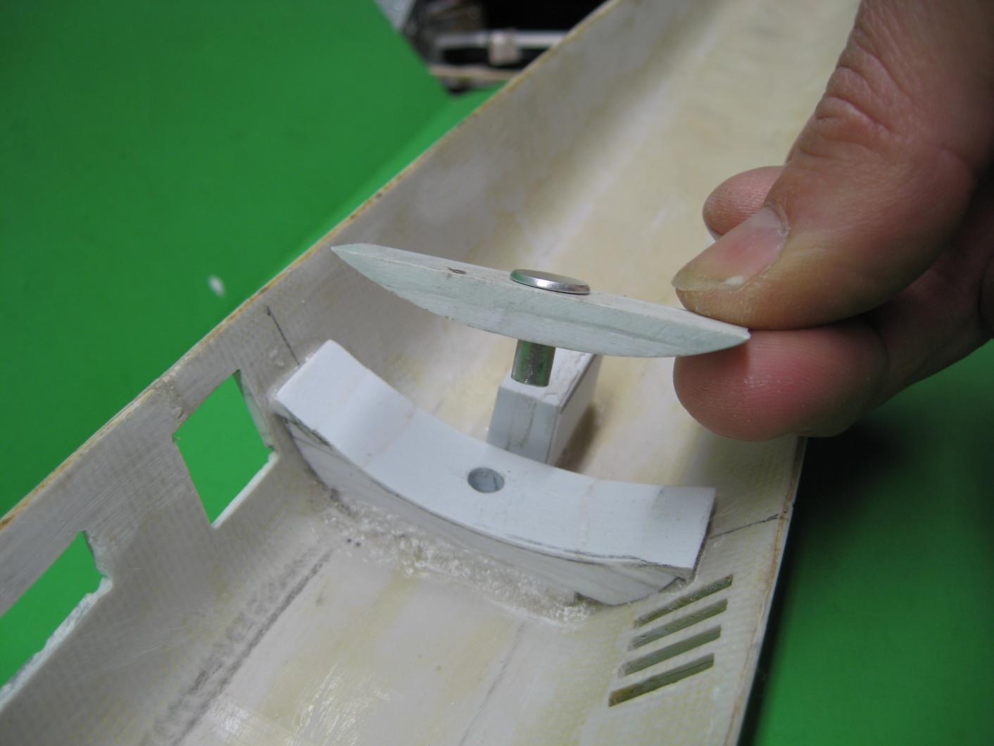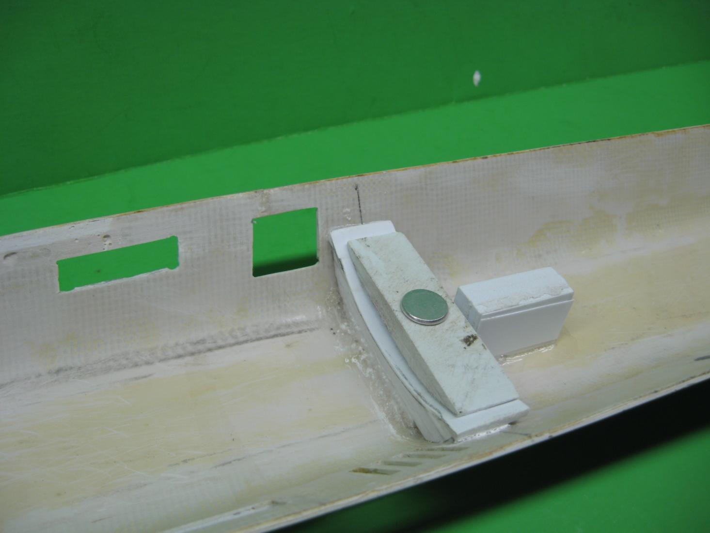 Small high strength magnets on each corner secure the hatch to the opening. To remove, just push on it from above though the top hull. Looks a lot better!