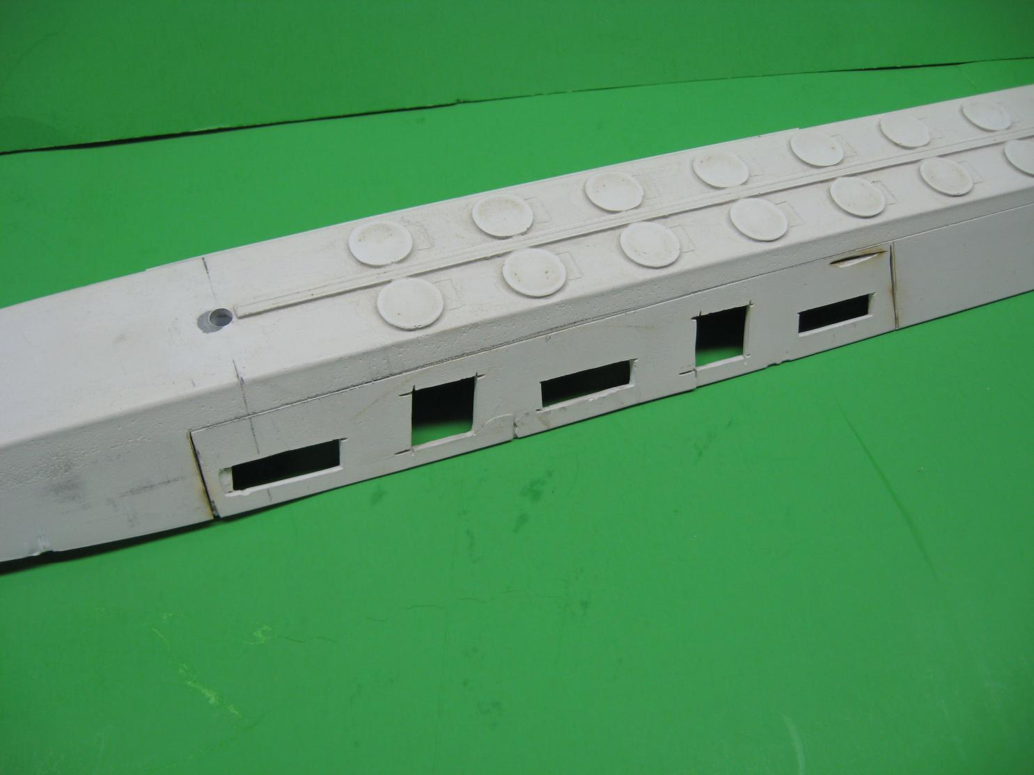 3- LIMBERHOLES! they are holes for sure, but I wouldn't call them 'limber'...Despite careful coaching by David M, I could not for the life of me cut, fill & sand these damn vertical slots as to be uniform, so matter what I did. So I cut them all out & decided to replace them with square styrene strip.