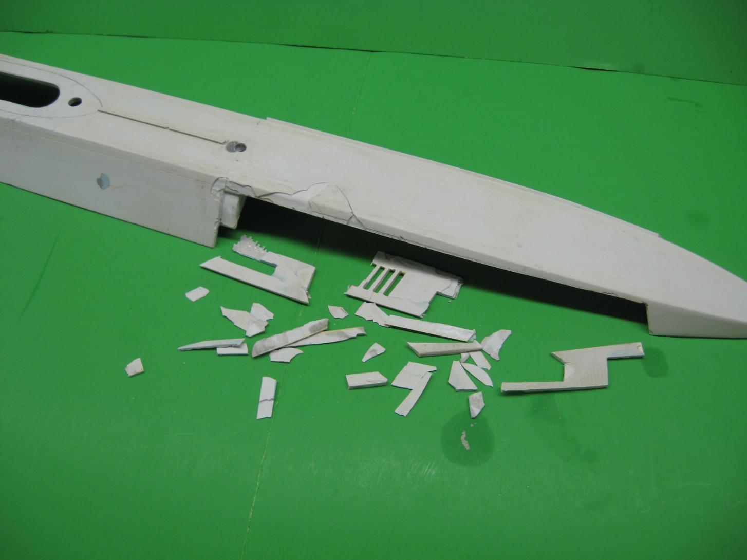 Precision cut, PERFECT limberholes in styrene, ready to be bonded to the crumbling deck: