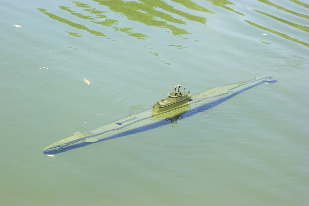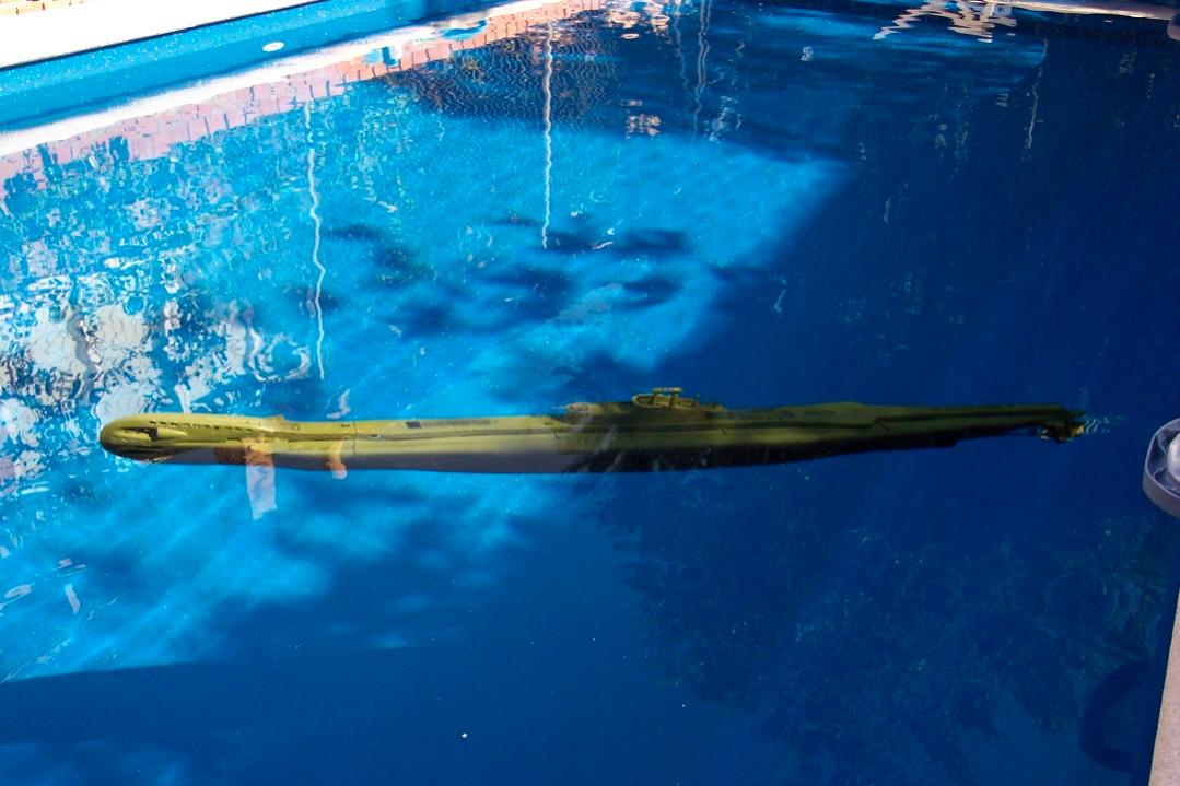 Once in the water it results to be not so complex as expected.The real breakthrough is to reduce the ballast tank size (in my case using foam cut in discs).Initially it showed some list that was easily corrected taking some foam from the side (Surface trim) The waterline as you can see is quite correct.