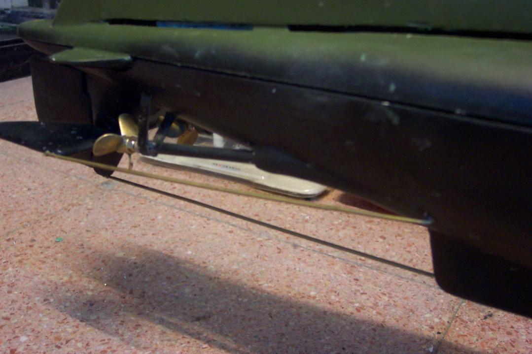One thing worries me and it is the fact that the motors got quite warm during operation.(Gear mesh has been cared for and adjusted for some minimum "click-clack")ESC is a Mtroniks 20 amp type and the props are 35mm dia brass from Caldercraft (rivabo) left and right handed.I do not know about the pitch but it has to be not high because the boat shows good pickup of speed but not high speed.They rotate inward.