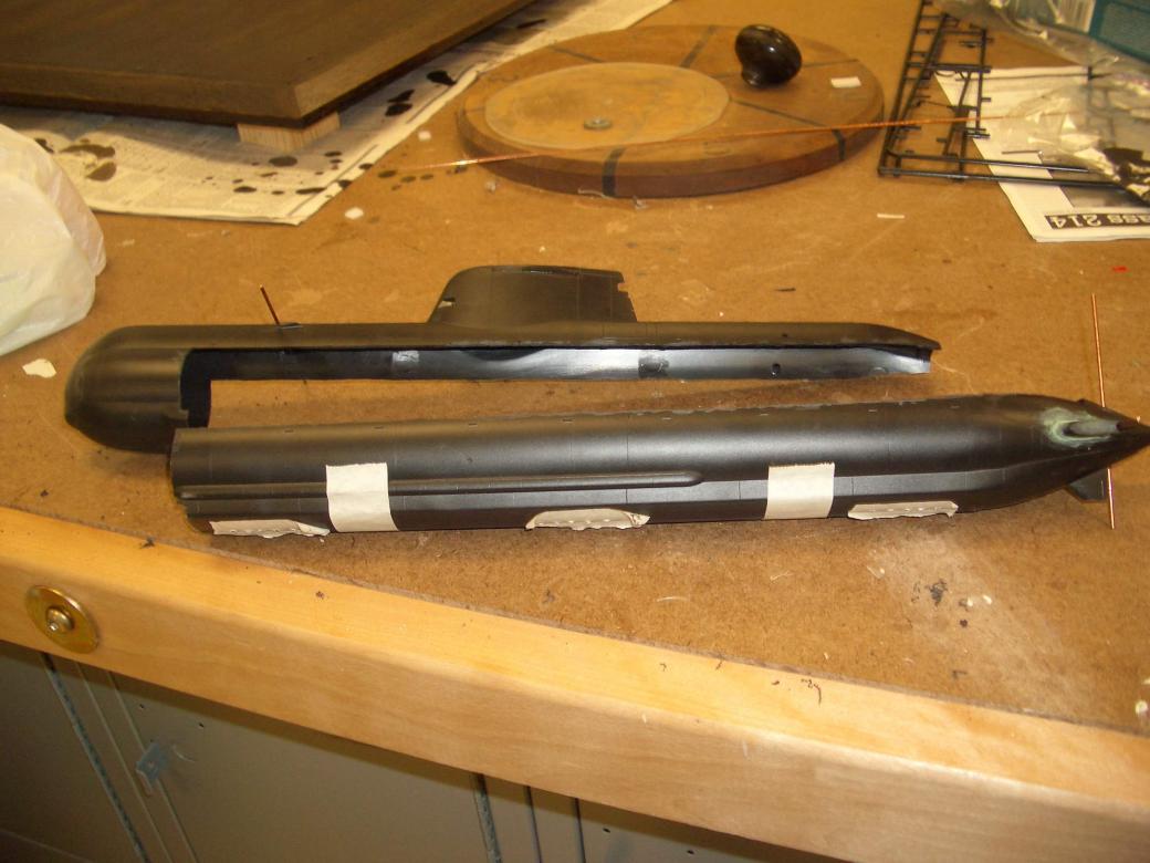 I'm building a 1:144 Revell U-214. I'd like to make it into an RC sub. I've already sorted out the hull separation and made the cuts.