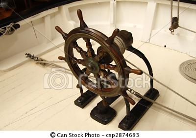 similar drum in the hull with a crank to operate it. Turn the drum and the fishing line turns the rudder.