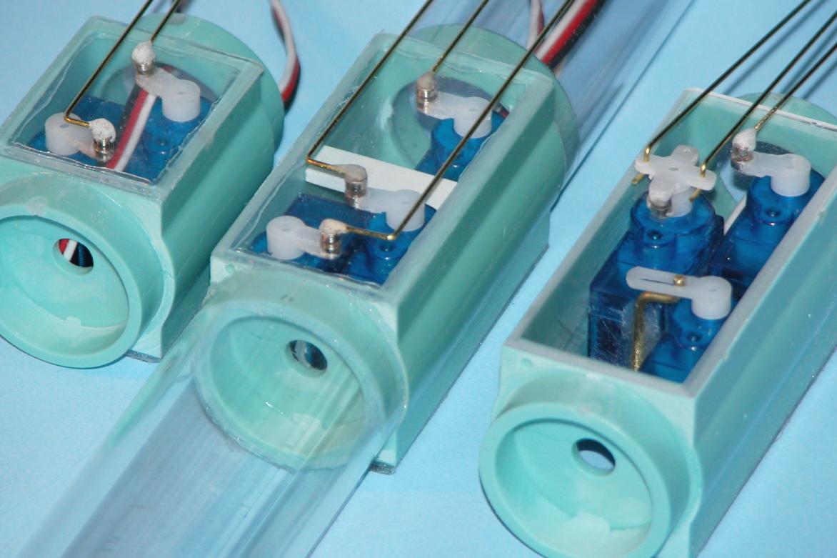 The testing protocol will go like this: A servo box will be outfitted with cylinders containing a battery and receiver and the unit will be 'on' during the test, i.e. I'll be able to control the servo via r/c during all phases of the test; a fitting will connect the test article to a volume tank that has been evacuated, the tank outfitted with a vacuum gauge and stop-valve; I will open the valve to partially evacuate the test article and will check operation of the servo at three foot increments (translating pressure differential to feet of fresh-water); performance evaluation will be conducted (providing there is no structural catastrophic failure of the test article) to the maximum of thirty-feet fresh water, which is one-atmosphere, the maximum differential when employing a vacuum at sea-level.