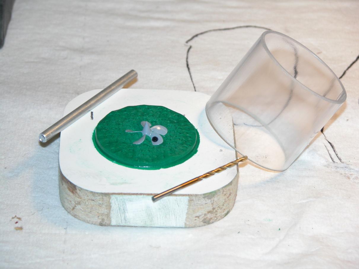 The containment dam for the propeller tool was a length of Lexan tube. Masking tape was used to hold in the liquid rubber around the weight and fittings kit tools.