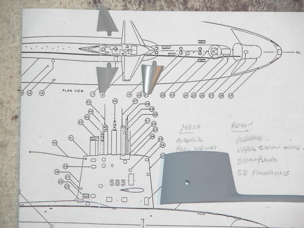 Oh, and the sail planes are too long of span and a bit out of profile. I took a set from a kit, shaved them down and will use them as masters so I can add correctly shaped cast resin sail planes to the SKIPJACK fittings kit. Again, the Greg Sharpe drawings were used as source as I made the corrections that turned the kit parts into production masters.