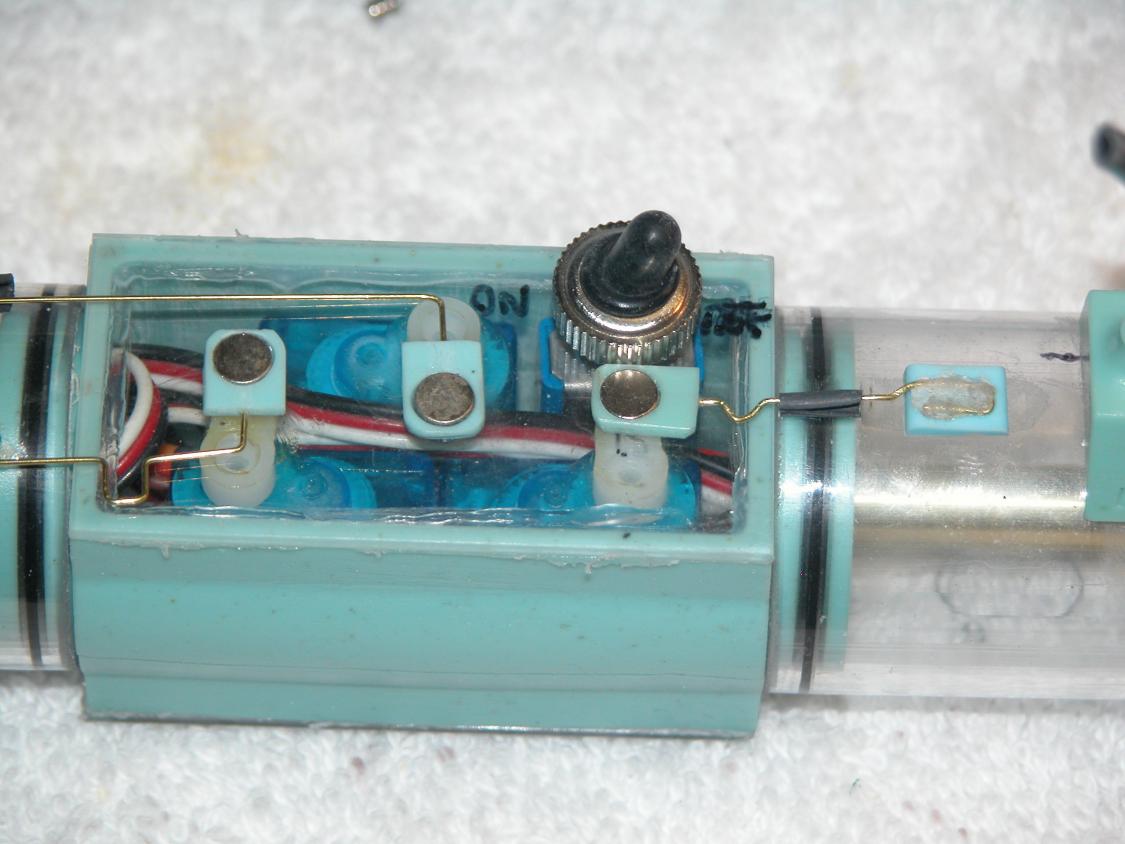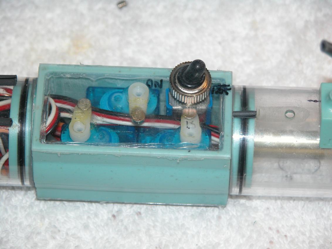 Sure doesn't look like there would be any room in the sub-driver for a fourth servo for the bow planes (unless you forego the mission switch). The resin blocks for the control rod magnets look like a much better solution than CA and baking soda. My two Revell Skipjack fittings kits don't have those resin coupling pieces for the magnets, but would probably benefit from them. Two of the 214's control rods have bends in them near the magnets. Any reason other than setting the length?