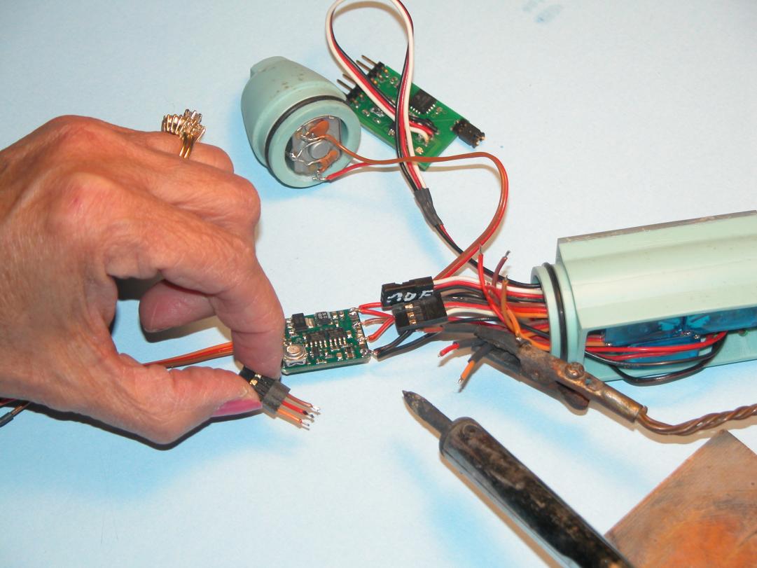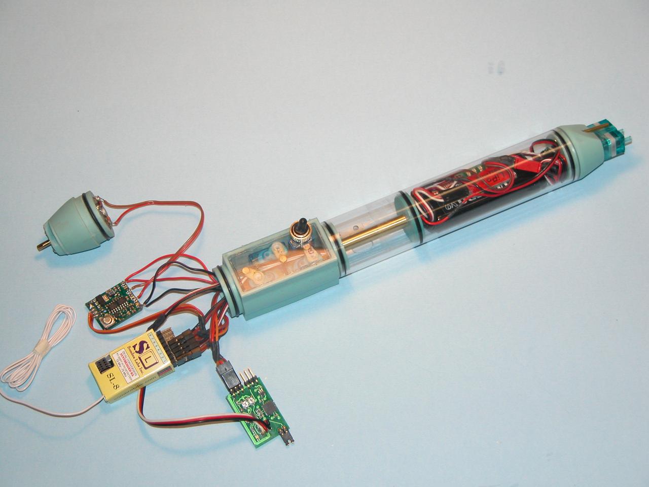 Looks like you're reached the maximum practical component density limit of this small SubDriver, unless components start shrinking. The servo module looks as if it would need to get expanded to pick up a fourth servo for, say, operable bow planes. My guess is that fine monster prop you've made will put plenty of water over the stern planes such that the Type-214 won't have any trouble maneuvering without bow planes. One less thing to buy/break, too...
