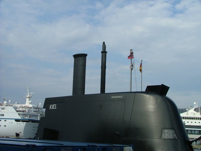 Since this boat is not using gas -- with it's occasional over-pressure of the hull -- the forward and after flood-drain holes are adequate; water has plenty of time to get into and out of the hull during the surfacing/submerging transitions.