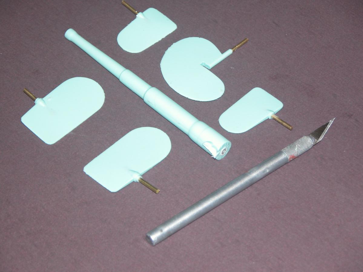 ... Now that I have one completed M-1 GRP hull in hand and another one being laid up in the tools as I write this, I guess I'll have to knuckle under and produce the other fittings needed to make this a worthwhile project. That means I'll have to work up masters for the two propellers, rudder skeg, deck fittings, secondary gun (well aft of the sail), primary gun muzzle door, and whatever other items should be provided to make the package a proper fittings kit.