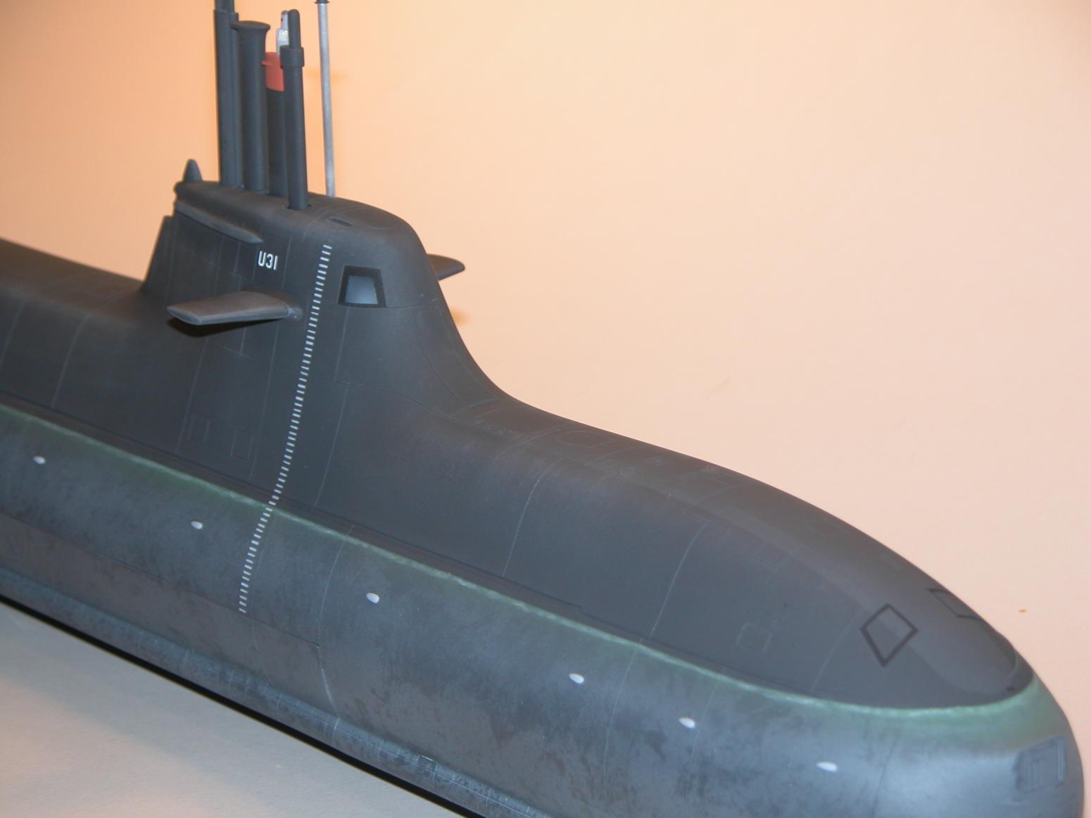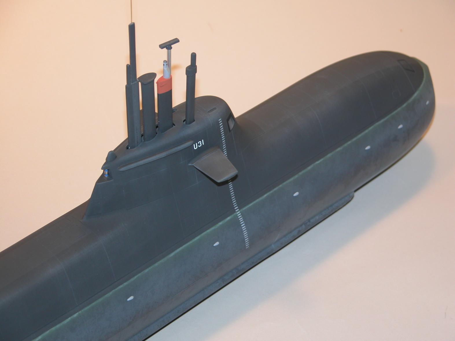 The 212s have only been in the drink a few years, so you would be way off the mark to show one all scuzzed out with bird-****, gross running water streaks, and excessive failed paint. All the shots I've found of operational units show well fed sailors, well maintained boats, and no expense spared to keep these national assets in tip top shape. What that means to me, and to anyone else modeling one of these submarines, is that you had better use the light touch when weathering your little 212.