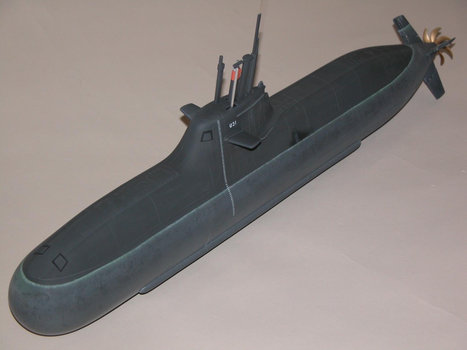 I needed twelve little tear-drop shaped items to fasten to the forward end of the hull, just a few scale feet below the waterline. These would represent the anti-corrosion zinc anodes along the all-steel portions of the Type-212's hull. The after portion of the submarines hull is presumably GRP -- the pressure hull stepping radically down in diameter aft of the sail, making room in the annular space between after pressure hull and GRP outer hull for the many cryogenic pressure bottles associated with the submarines Air Independent Propulsion (AIP) machinery.