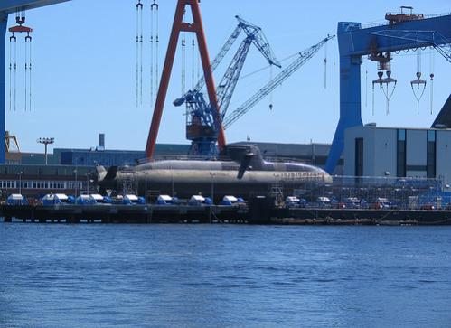 You can see these external zincs in the two pictures of actual Type-212 boats below. There are six of these zincs on each side of the hull. My problem was how to fabricate these little critters quickly, with assured uniformity of form between them, and from a material that was quick curing and also easy to work with. The answer was to use the same Alumilite polyurethane two-part casting resin I used for the larger castings. However, the tools used to give shape to these zinc parts would be a simple, one-shot, open face clay mold.
