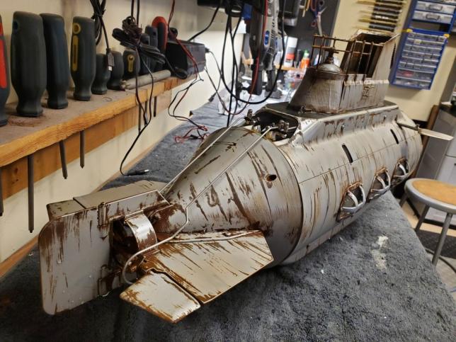 This particular boat is in Brand New Condition and has undergone upgrades, including a new, high-efficiency propeller, upgraded battery, upgraded ballast pump, and a complete rework of the hull in the "Steampunk" feel.