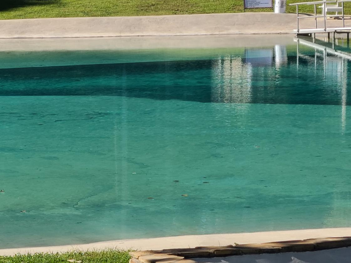 The pond is about 14ft deep at the center, if memory serves. 90% of it is concrete lined except the very center.