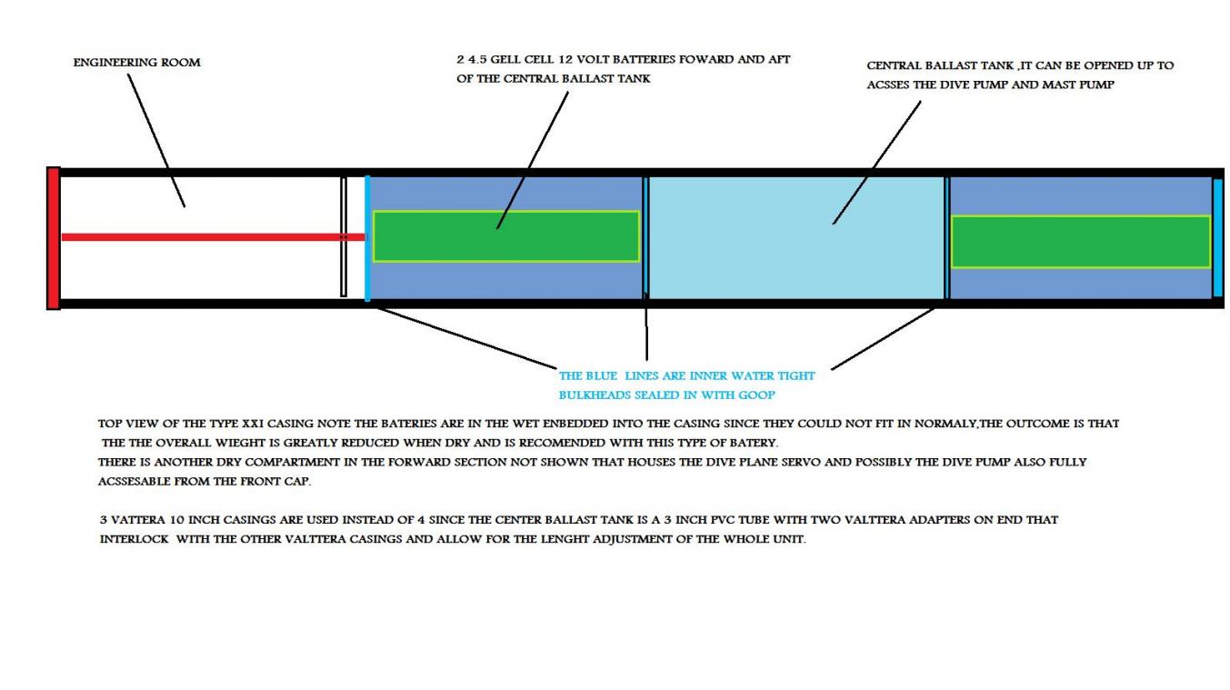 Here one can see the casing being propagated with the required equipment to make her do her stuff like hydraulic masts, retractable dive planes and an anchor that works by remote.