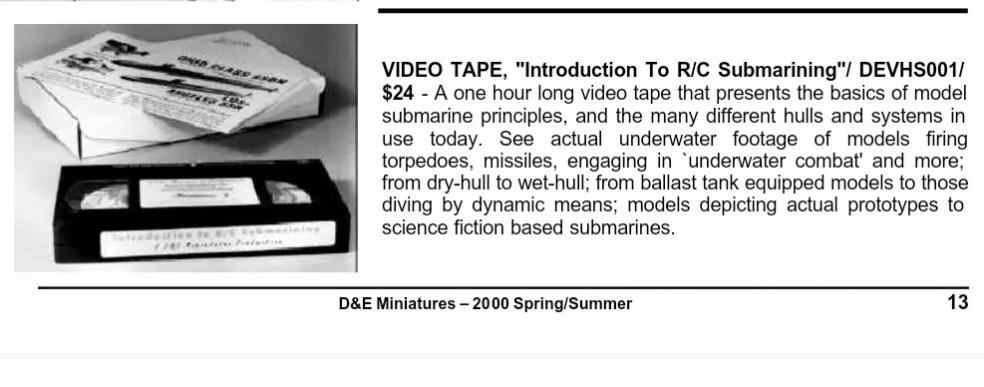 Remember seeing photos of the spy sub in your old website Vabiz.com. Unfortunately couldn't find any. I did find these. RC Submarining Book and VHS tape Do you still have a copy? Maybe transfer to DVD?