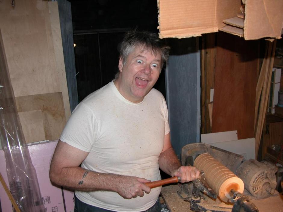 The raw circular edge of the cylinder was trued up on a belt-sander equipped with a specially made fence that holds the work perpendicular to the machines bed -- this is how I face of the cylinder ends. Easy peazy.