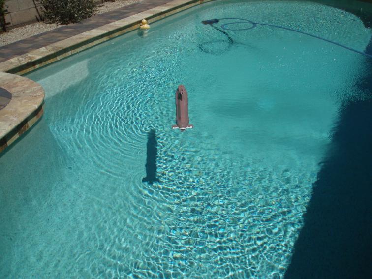 Thank you! I do not have a YouTube account yet. So I am going to send a video that I took of it when I was testing it to Bob Martin and he will put it up for me. When I am sure the finish has had enough time drying I will then put it to the water again. I just shocked the pool, and I would be a little concerned about the finish coming off!