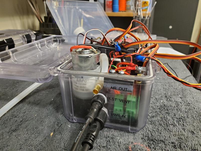 This is the new programming and test rig that I built for the superb little BLHeli32 ESC's that Andy put me on to for the new MSD cylinders. The ESC's are literally the size of a postage stamp and offer TONS of programmable features. This rig allows me to program each ESC and test for functionality before bundling with the cylinders for shipping.
