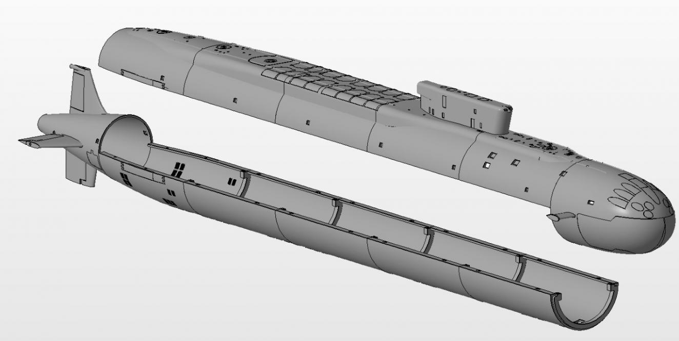 New 3D files coming soon! Randy up in Canada has banged out another awesome sub hull and I'm deep into printing the prototype. This is the Russian Borei class, soon to be available for download!: