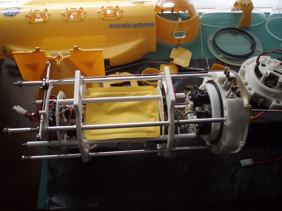 I've been putting some thoughts together in regard to the control system for the boat. The access to the rear section is only about 1.5" wide. I'm thinking of building a clear acrylic box that will house the battery, air pump, receiver and four servos (rudder, rear planes, front planes and ballast). The ESC and brushless motor will live in the wet. This waterproof box will drop in from the top and seal on a foam seal at the bottom. In that way, if there is a leak at the main seal, air pressure will stop the water from advancing more than a tiny bit into the electronics compartment (think diving bell).