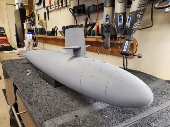 I finished up the first prototype 571 Nautilus hull. This was done in 72nd scale and is really big. Too big for most hobbyists. I've since scaled things back to 96th scale, but this hull has found a new home and is getting shipped out as soon as the final payment is received.