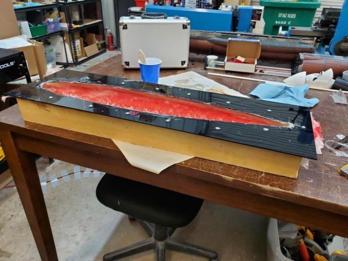 The 1/6 Delphin first layup is in the molds and we will be de-molding this morning. The mold is symmetrical top and bottom, so one mold handles both.