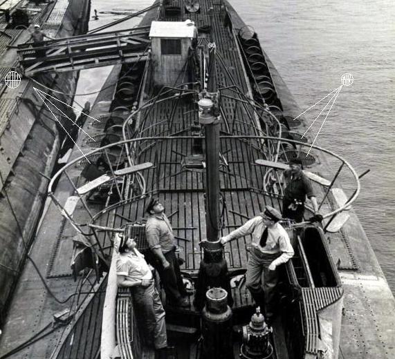Those type Xs were huge, 10 meters longer than a IXD2. The largest U boats produced during the war. Built as mine layers initially, they had several wet storage shafts for mine dispensers, all over the decks and in the balast tanks, amidships. You can just bairly make out the grills in the saddle tank amidships below the tower in the last pic of U 233. Also you can see the dispenser on the foward deck, on the pic of U 119 They look like big commercial rooftop airconditioner vents, round and about 2 ft across. A bit slow, and only 2 tubes, aft, it wasnt to practicle for a Front boat It had storage for 62 large mines and after 1942, the mine laying stratigy was waining, so their usefulness in convoy attacks was null. Eventally they were converted to long range transports and tankers. Some of the wet storage tanks were welded over, to facilitate cargo, and some were removed completely. The huge saddle, balast tanks were filled with fuel, and the now dry storage mine dispenser shafts were filled with supplies and ammo to resupply the longer range patrols as the war progressed. Some went to the far east , they were the "Monsoon boats" that went to colaberate with the Japanese. Some were converted to supply boats. Several were captured by the Allies, with all kinds of contraband aboard, like U234. You can see a few of the grated covers on the tops of the tanks aft of the tower. the others forward along the tops of the saddles have been welded over for dry storage. Notice the american flag, and US Navy officers on the bridge admiring. I recall the little wood outhouse looking sheds as being the inclimate weather, quarter deck watch, post.on our fleet boats, back in the day, when they were in port. Hes the sailor in dungeries with the sidearm leaning on the gangwayClick image for larger version