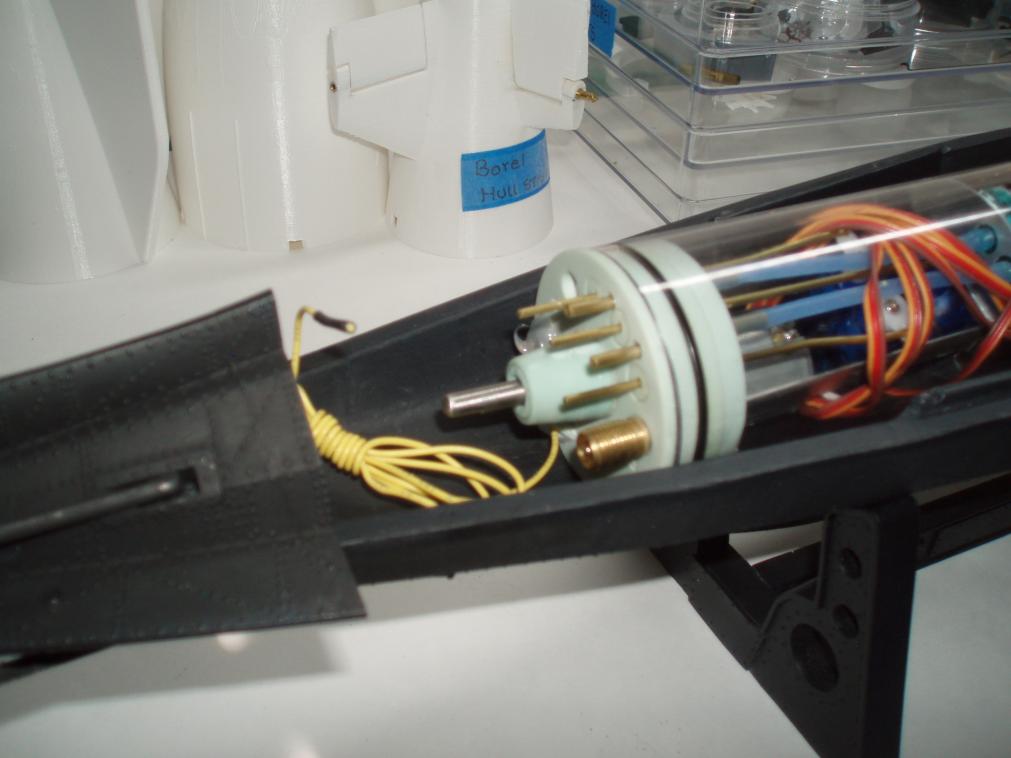 This photo shows the prop in a slight upward vertical position which will aide along with the ballast system to achieve diving!