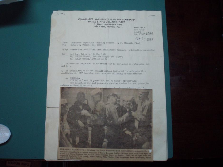 While in the service I did put in for UDT training, and as soon as I finished up boot I was on my way to the U.S. Naval Amphibious Base in Norfolk, Va.I got my transfer from Naval Reserve to regular Navy.