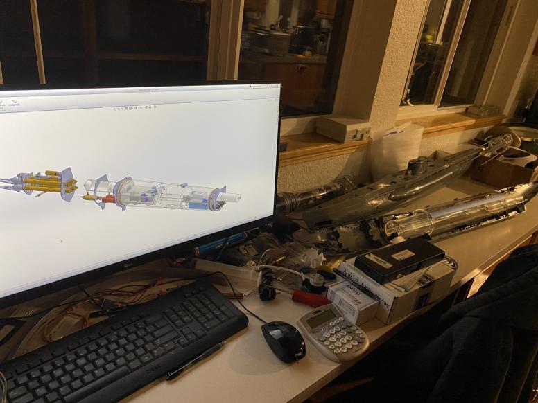 Made a small amount of progress on the design today. Worked out the positions of the forward and rear pushrod penetrations with bushings and u-cup seals. The servo pushrods are stainless steel. Figured out the placement and penetrations for the intake and outlets for the peristaltic pumps as well as for the LBM pumps in the forward WTC end cap. Started work on the forward compartment linear pushrod to servo mechanism. Spent a good part of the day going down the rabbit hole on IP68 multi pin connections and cable glands in preparation for making a plan to get power and signal wires through the forward WTC bulkhead for the torpedo system.