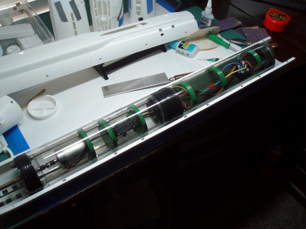 The original prop dia. was 27.00 mm! The new system that I constructed has a 35.50 mm prop, and larger thruster housing to support the bigger prop.