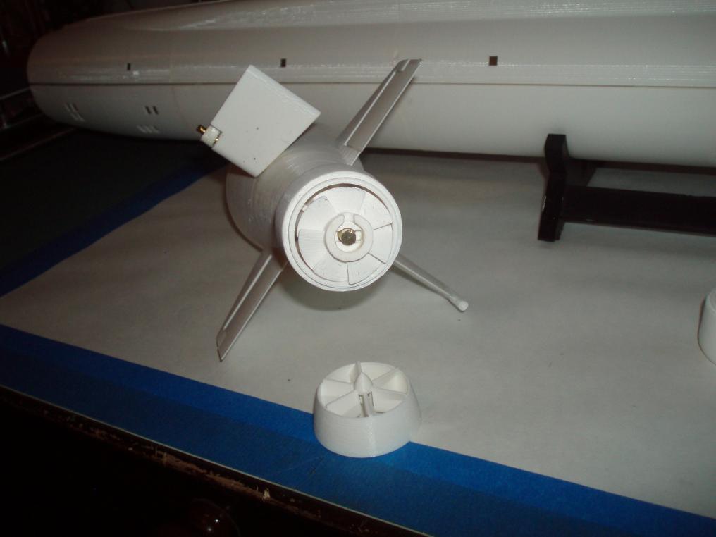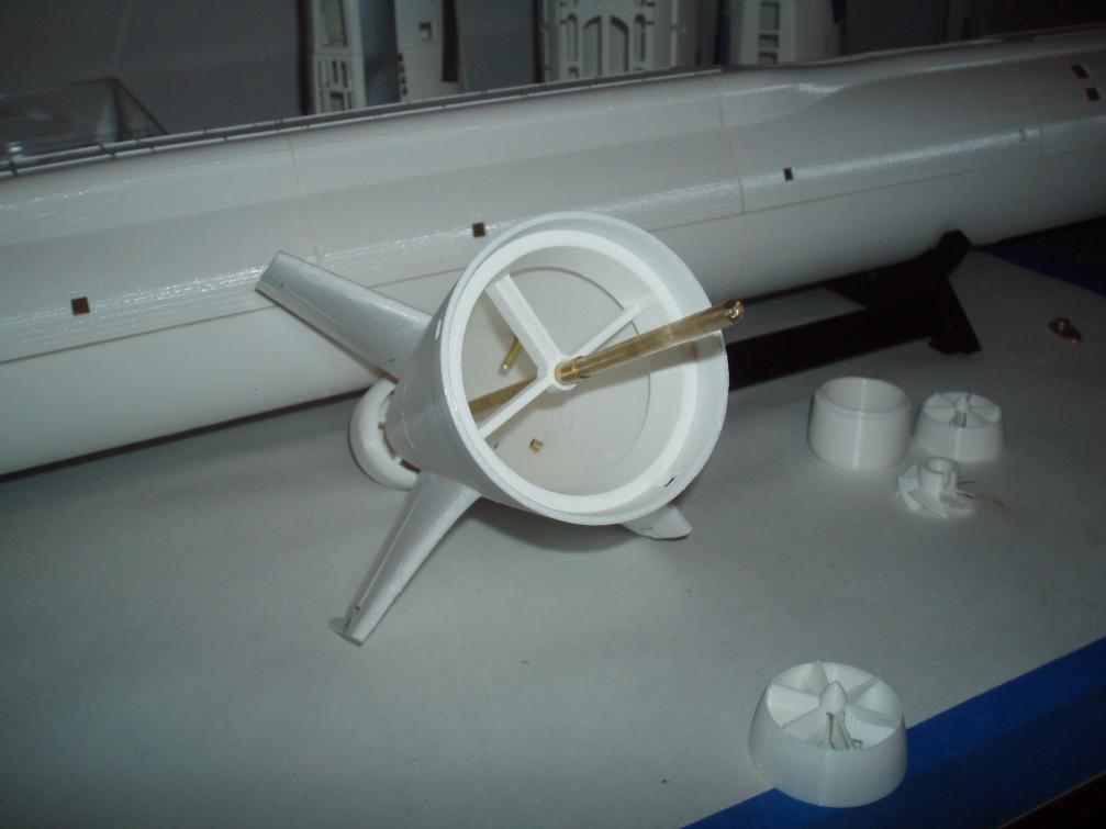 I enlarged the propeller and the thruster housing in order to give the Borei more propulsion speed!