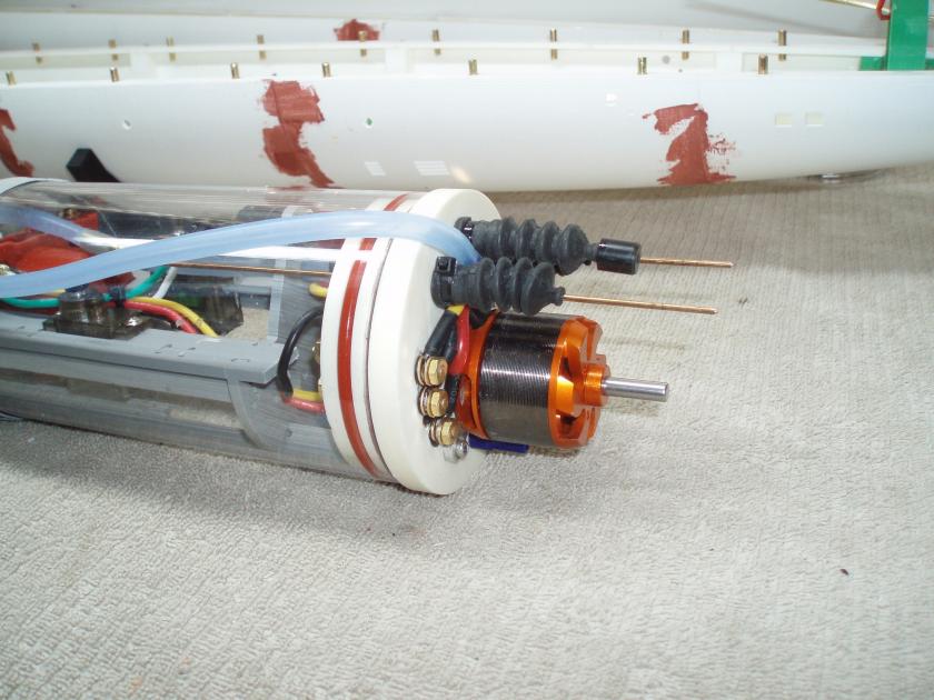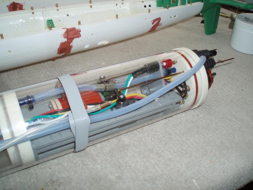 As some of you are aware this WTC started out as an 80mm WTC with dual brushed motors that I purchased from Nautilus Drydocks for my Arkmodel Type VII submarine. Well in classic fashion I managed to screw up the (burned up) the original WTC. So I decided to refurbish the WTC and rebuild it using a single 750KW brushless motor and revamp the WTC except for the ballast pump and ballast tank and use this rebuilt WTC on my 1:72 3D printed Russian Alfa boat
