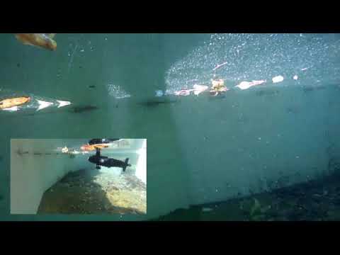 Just back from the local fountain. That was not just great fun but real success: After some initial adjustment the camera was spot on shooting nice UW video. The Seawolf behaved nicely although I do need to add a bit of forward weight to trim out the camera housing. But still managed to nicely dive and move swiftly around the narrow fountain. The Seawolf steers on a dime, which helps. Until I hit the area of seaweed where some got into its downward propeller. That stopped the diving action. First I thought it was dying batteries but it was just some seaweed. Lesson learned: Next time bring some pliers to get that stuff out. Nonetheless here a still image from the movie. I also had a UW Hero on a tripod so now I have the pleasure of editing some UW mini film together.