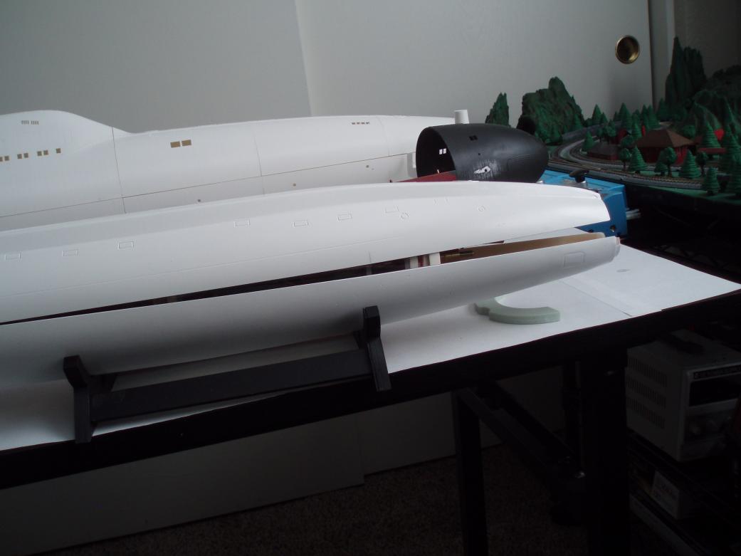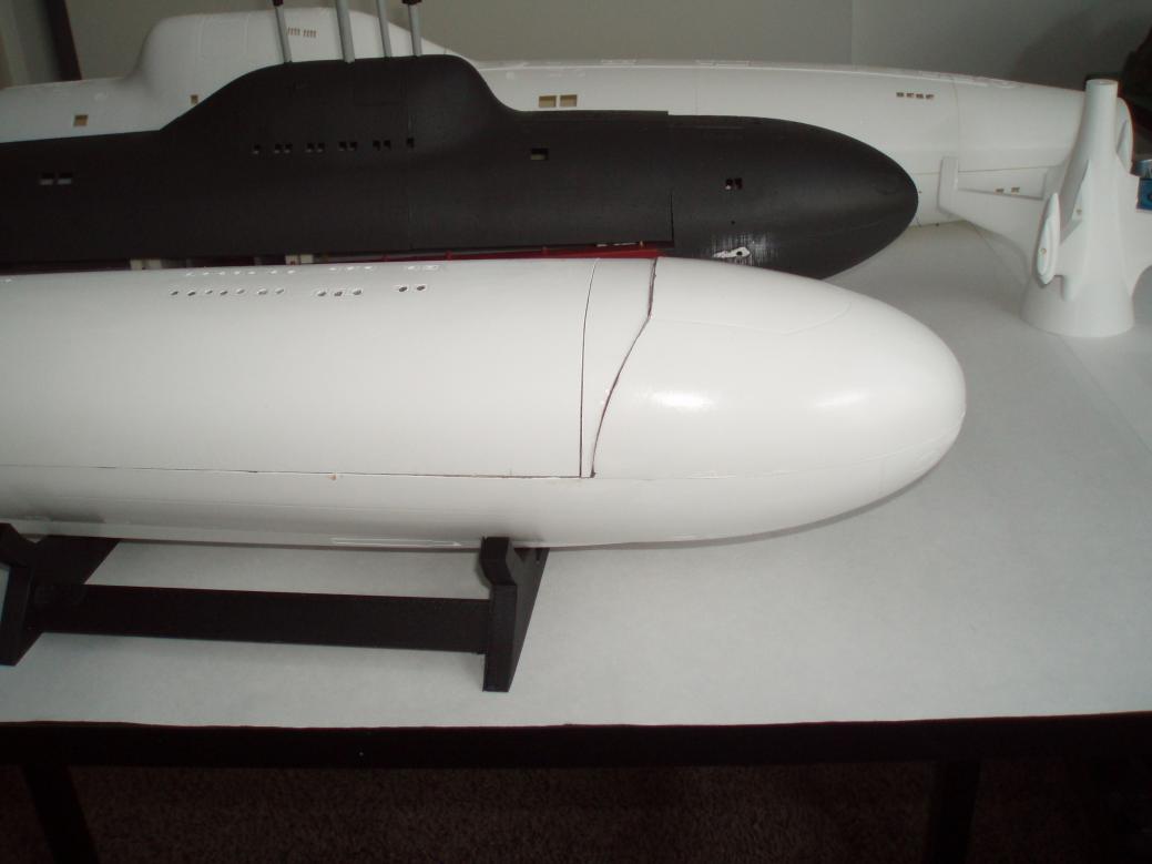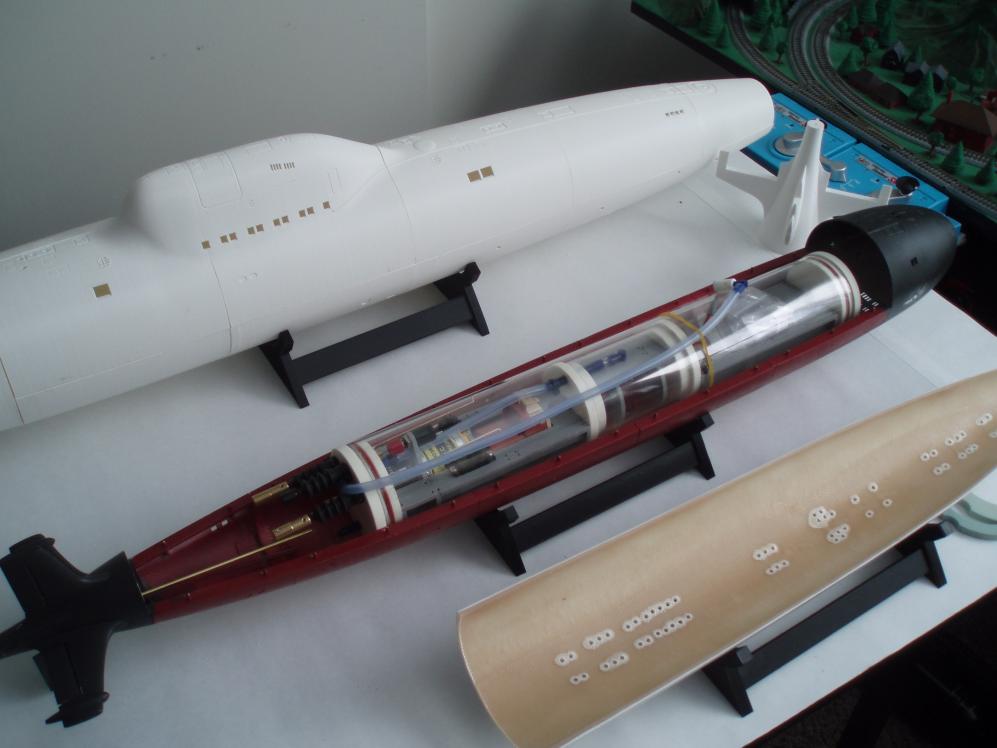 I will find a way to make things work! As for the forward dive planes, I was thinking their location was more to the center of the hull (my bad for not studying the photos) I will get a servo mounted somewhere to make them work. As for cutting into the WTC cylinder, that is not going to happen!