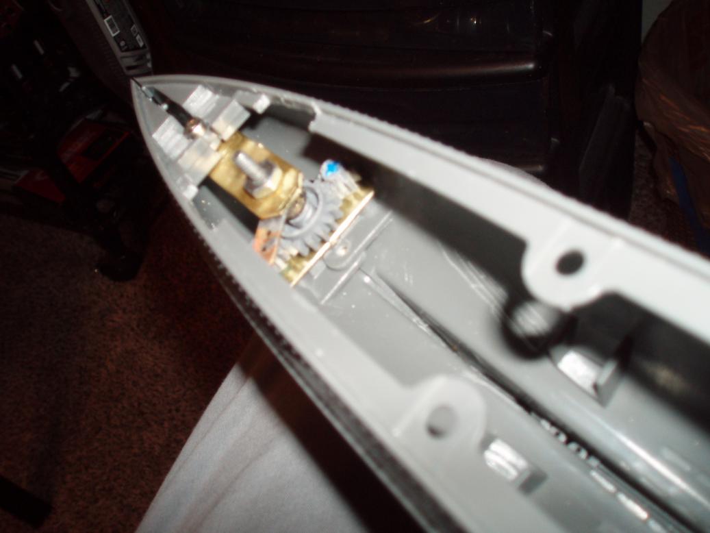 Today I finished up the stern section rudder and dive planes controls. I did not use the control linkages that came with the kit. I used gears for the rudder system and replaced the plastic horn for the dive planes