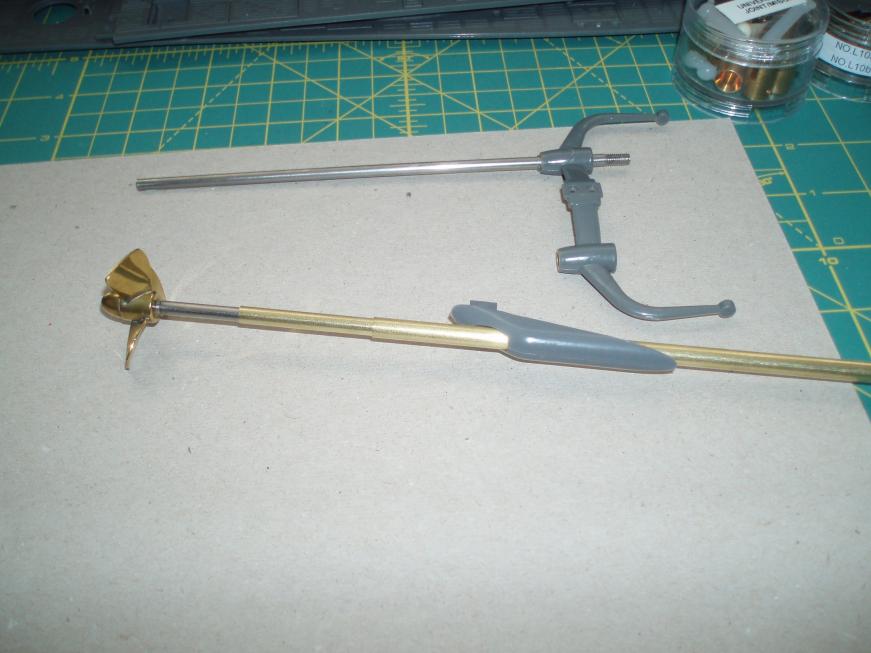 I spent the day finishing up the stern section of my Arkmodel! I do have two brass props for this boat, but the ones that came with the kit are not to bad. They have threaded brass inserts and good heavy solid blades!