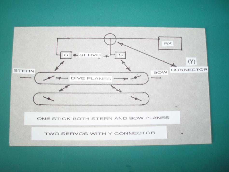 I did set it for both bow and stern dive planes to work in sink with each other. I have my reasons for doing this type set up on my Arkmodel Type VII. I really do not want to get into the reason why I am doing this, it's not worth the effort to explain it. Most would disagree with my set up, and that is fine! I am an unorthodox out of the box as a builder, finisher, and the way I run my boats. It works for me, and that is good!!