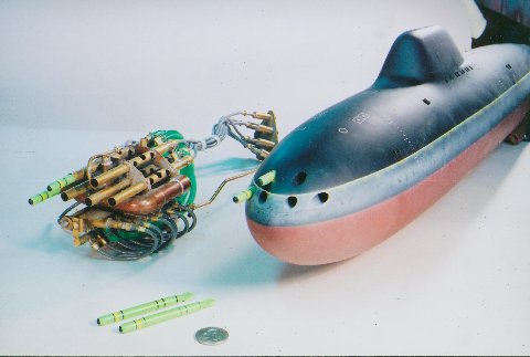 In the case of these gas weapons, what I'm pleased to call 'swim out' as the means of launching, is a bit of a misnomer: the weapon generates the gas that pneumatically squirts the weapon out the tube -- the torpedo self-propels itself out the tube like a swim out, but the high differential pressure between the front and back of the weapon within the tube is created by the gas expelled by the weapon. So, in my system (and the ground-breaking Mike Dorey system upon which my work is based) we see elements of the swim-out and ejection modes used to get the weapon into the water.