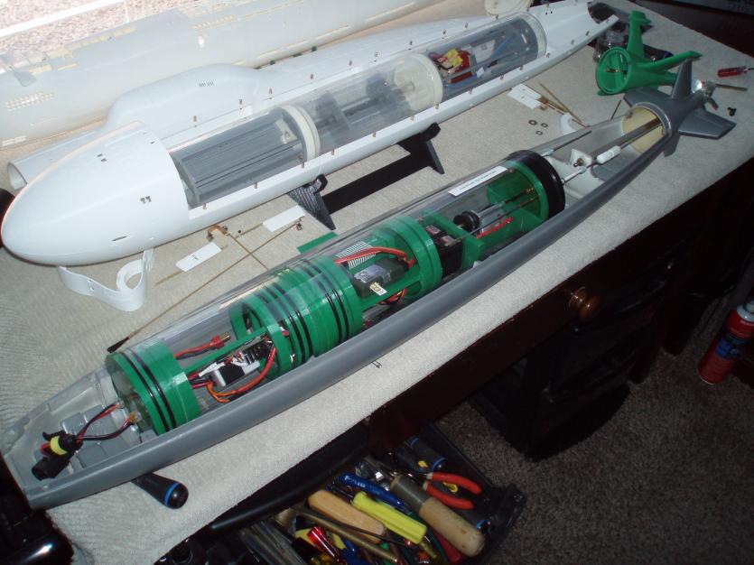 Today I installed the stern section to the main hull, after doing a preliminary fitting of the rudders and dive planes.